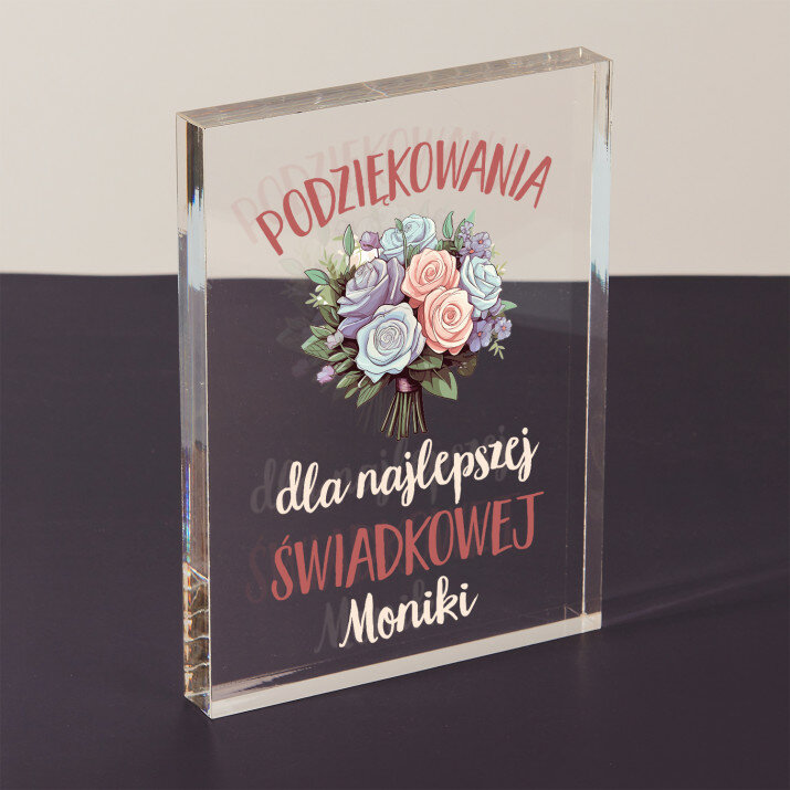 Wyjątkowa pamiątka, która zachwyci obdarowaną osobę! Wydruk na bezbarwnym szkle akrylowym (pleksiglas) o grubości 2 cm to upominek na lata. Materiał wyróżnia się doskonałą jakością powierzchni i sztywnością, jest odporny na uszkodzenia oraz warunki atmosferyczne. Prosta i nowoczesna forma wydruku zachwyci obdarowaną osobę!