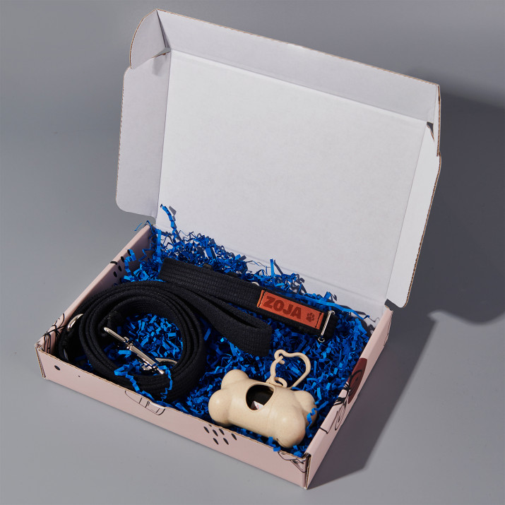 Na obroży umieszczamy personalizowany grawer, dzięki czemu zestaw jest jeszcze bardziej wyjątkowy. Całość jest zapakowana w ozdobne pudełko, więc prezent jest od razu gotowy do wręczenia.