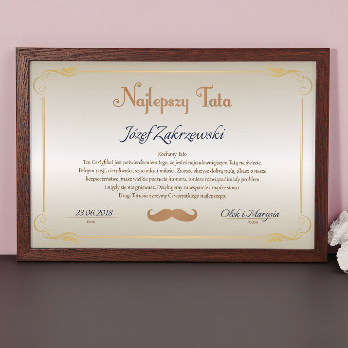 Certyfikat - Najlepszy Tata pokaże Twojemu tacie jak bardzo go kochasz i ile mu zawdzięczasz. Zaskocz go!CERTYFIKAT