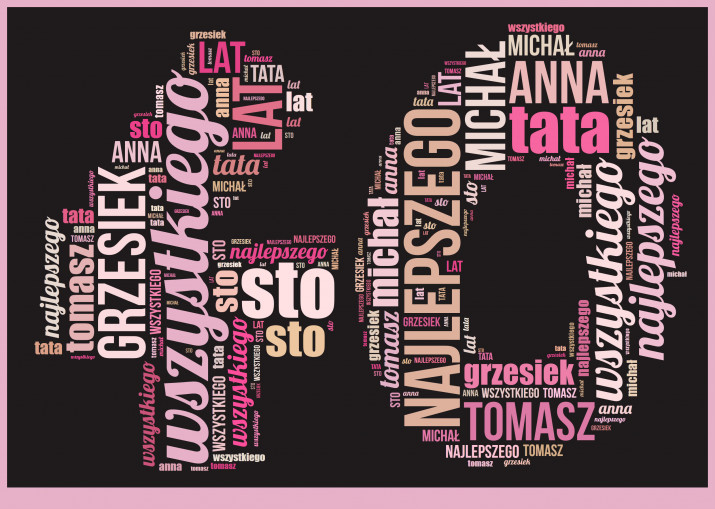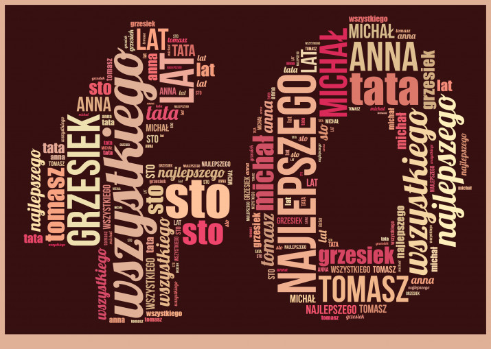 Czterdzieste urodziny znajomego lub kogoś z rodziny warto uczcić w odpowiedni sposób. Prezent w postaci dużej cyfry wypełnionej emocjonującymi życzeniami będzie tutaj strzałem w dziesiątkę!Chmura Słów