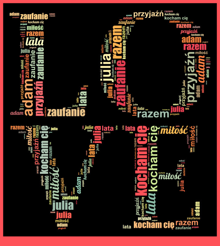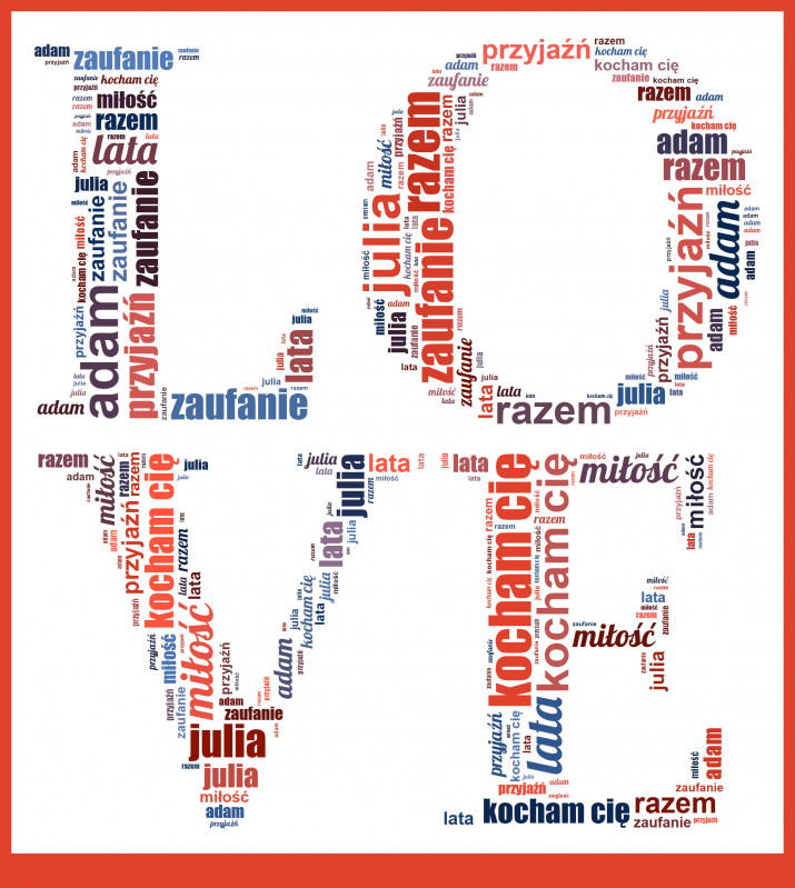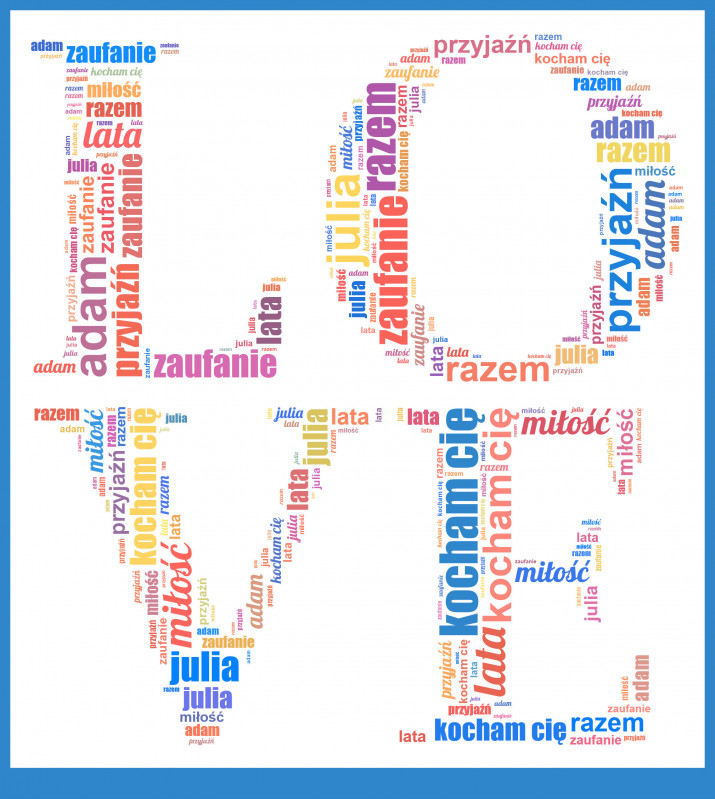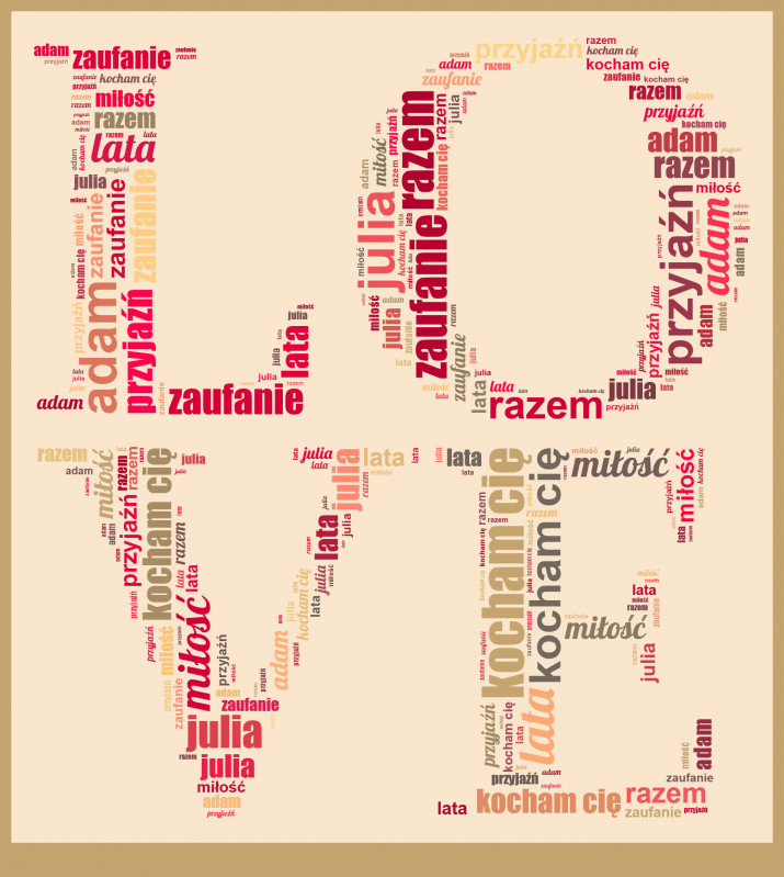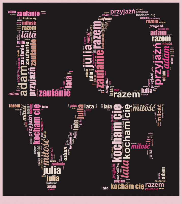 Czasem miłość trudno wyrazić słowami, choć język zna tyle określeń na to piękne uczucie. Teraz możesz zebrać je w jednym miejscu – na tym stylowym obrazie – i przekazać ukochanej osobie w formie prezentu!Chmura Słów