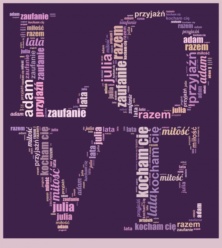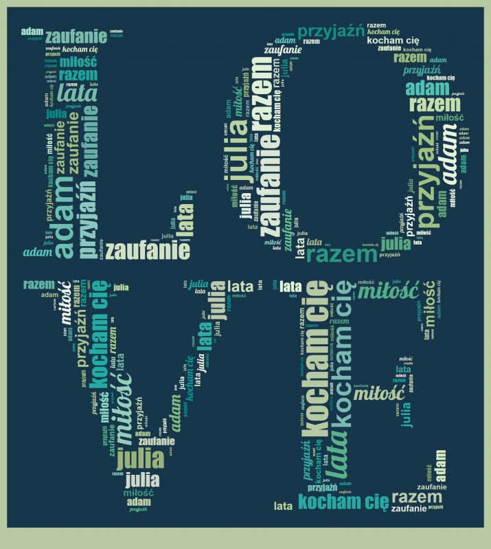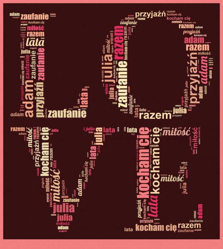 Zamówienie i personalizacja Chmury Słów potrwa tylko kilka minut. Wystarczy, że wybierzesz słowa z jakich ma się składać chmura oraz wybierzesz jedną z 10 możliwych palet kolorystycznych.Wykonanie