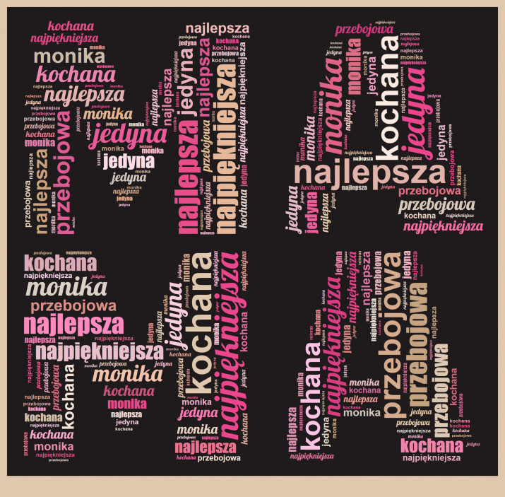 Obraz na płótnie Chmura Słów to wybrany projekt, który składa się z przesłanych przez Ciebie słów. Dzięki takiemu prezentowi możesz przekazać wiele życzeń, albo emocjonalną wiadomość w unikalny sposób. Możliwość personalizacji obrazu pozwala na stworzenie wyjątkowego i jedynego w swoim rodzaju prezentu.Personalizacja