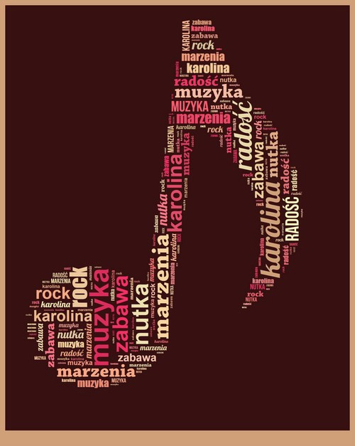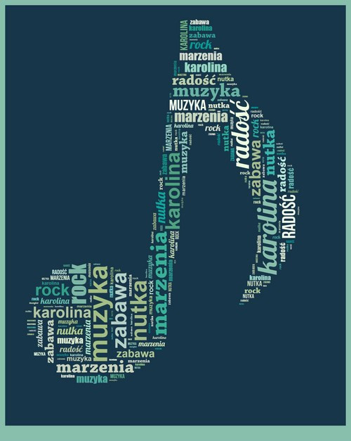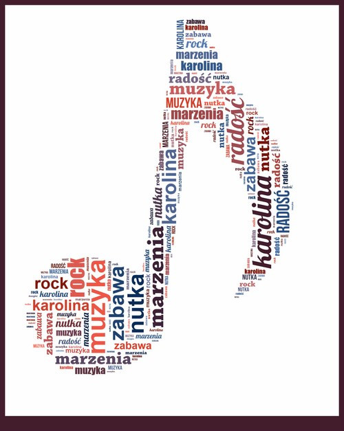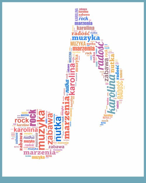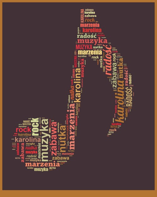 Szukasz prezentu dla kogoś związanego blisko z muzyką? Stwórz dla niego imponujących rozmiarów nutkę zbudowaną z melodyjnych życzeń! Pasjonaci dobrej muzyki z pewnością docenią taki prezent!Chmura Słów