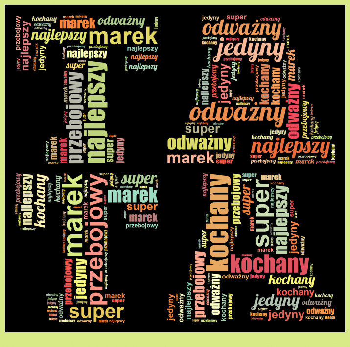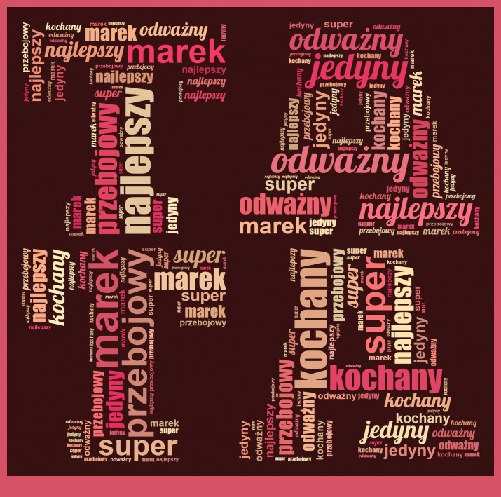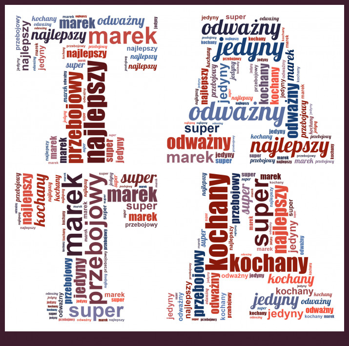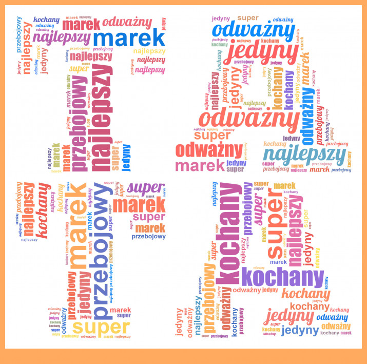 Zamówienie i personalizacja Chmury Słów potrwa tylko kilka minut. Wystarczy, że wybierzesz słowa z jakich ma się składać chmura oraz wybierzesz jedną z 10 możliwych palet kolorystycznych.Wykonanie