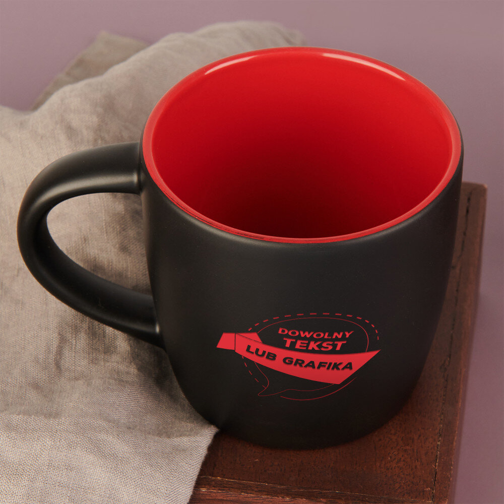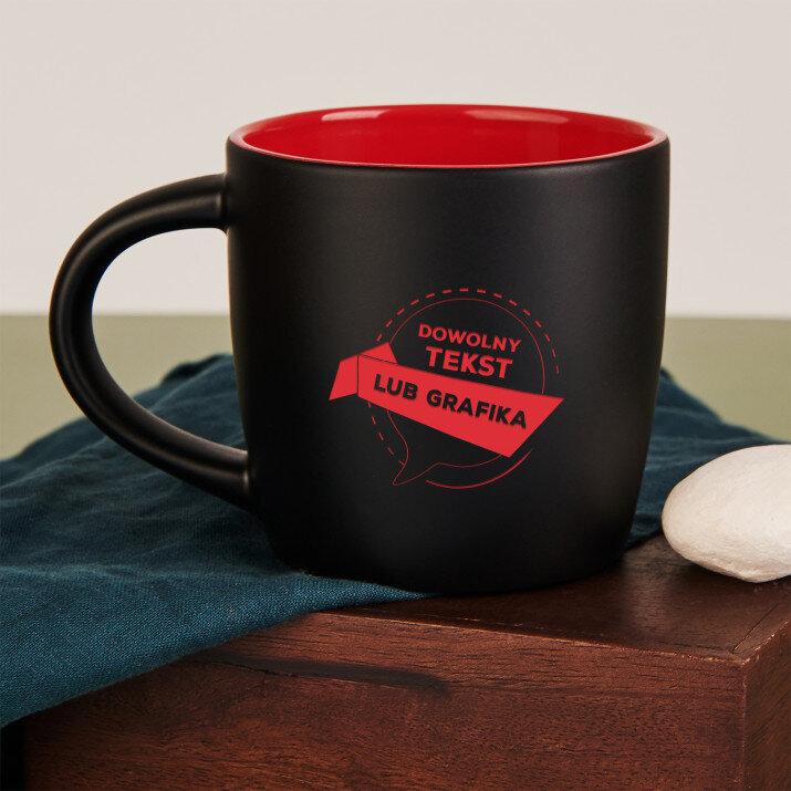 Stylowy kubek ceramiczny z wyjątkowym nadrukiem. Wysoka jakość wykonania oraz eleganckie wykończenie sprawiają, że świetnie sprawdzi się, jako prezent na wiele okazji. Kubek dostępny jest w kolorze czarnym z oryginalnym, czerwonym wnętrzem.Wymiary: pojemność ok. 290 ml, wysokość 85 mm.