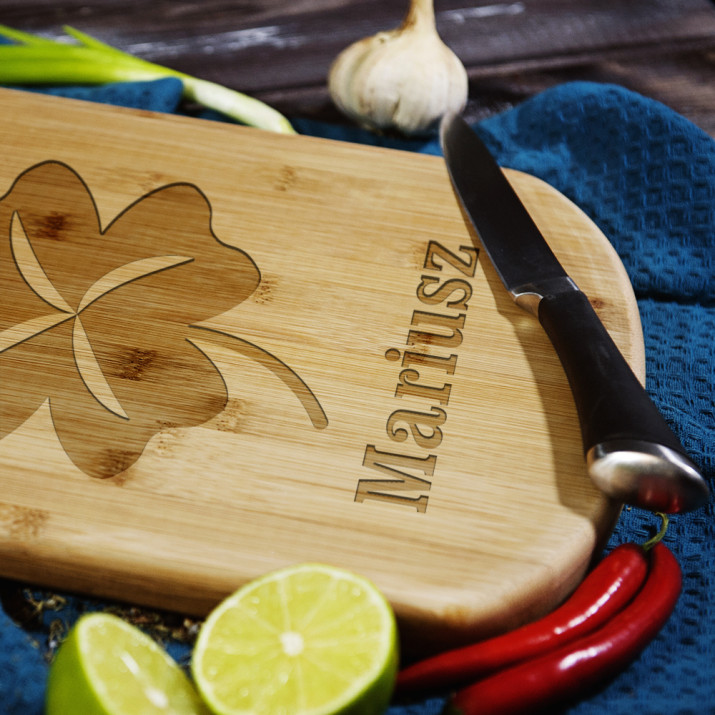 Strona deski z grawerem nadaje się również do cięcia, jednak mając na uwadze utrzymanie graweru w nienaruszonym stanie, proponujemy wykonywanie cięcia po drugiej stronie deski.Zalecamy także umyć deskę wodą z płynem przed pierwszym użyciem oraz unikać mycia deski w zmywarkach.