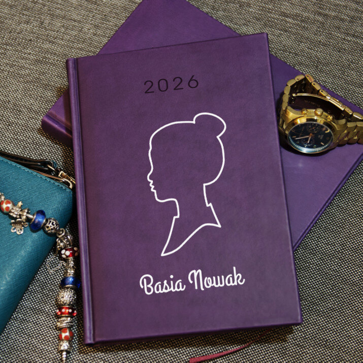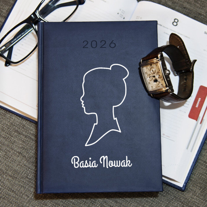 Wysokiej jakości kalendarz książkowy w formacie A5.Oprawa z aksamitnie miękkiego, miłego w dotyku, matowego materiału.