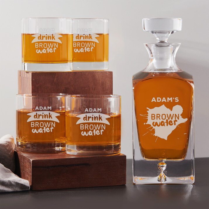 Brown Water - Zestaw grawerowana karafka i szklanki do whisky