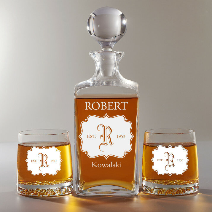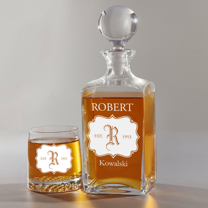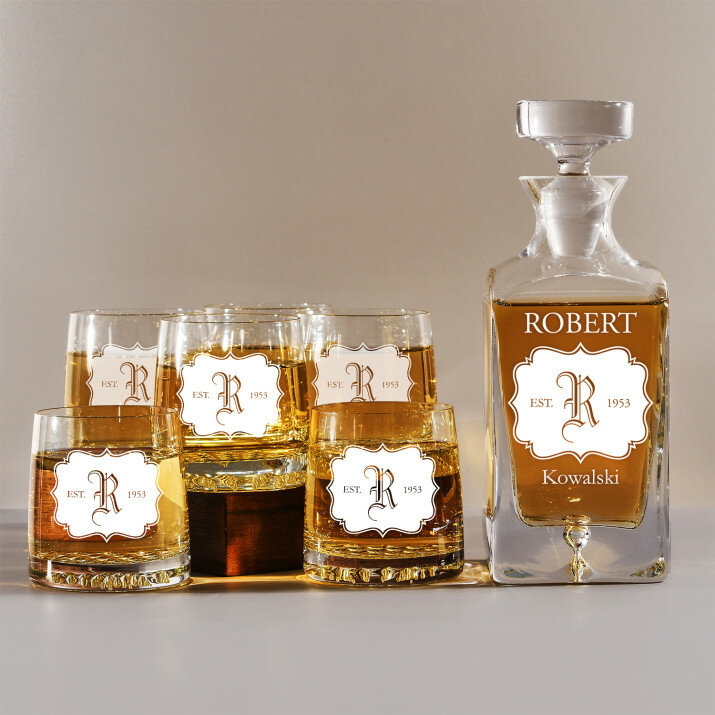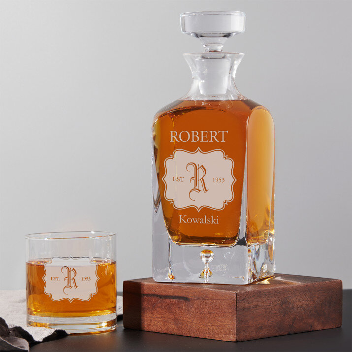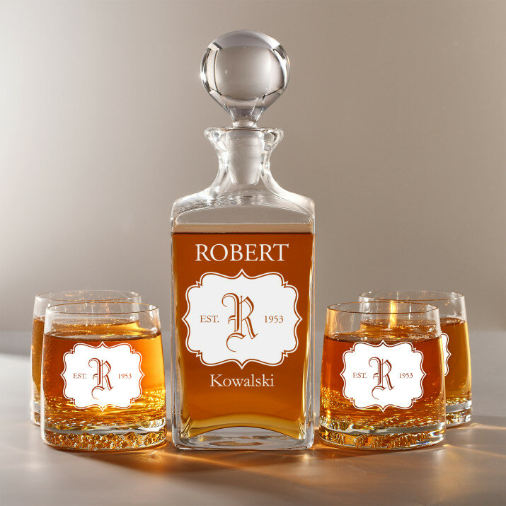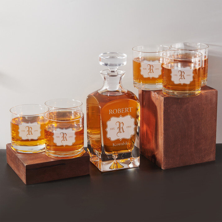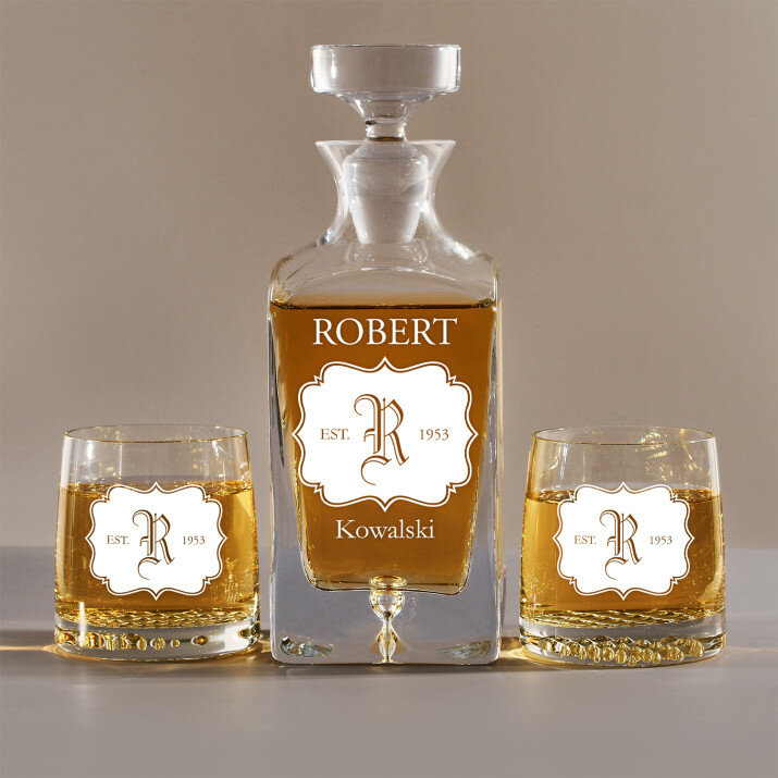 Inicjał - Zestaw grawerowana karafka i szklanki do whisky