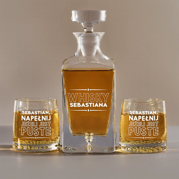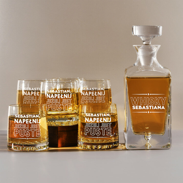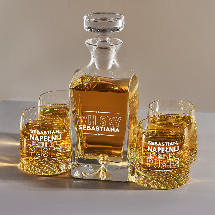 Napełnij -Zestaw grawerowana karafka i szklanki do whisky