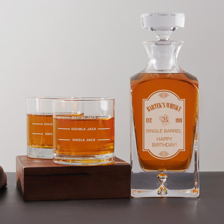 Single Barrel - Zestaw grawerowana karafka i szklanki do whisky