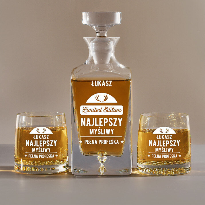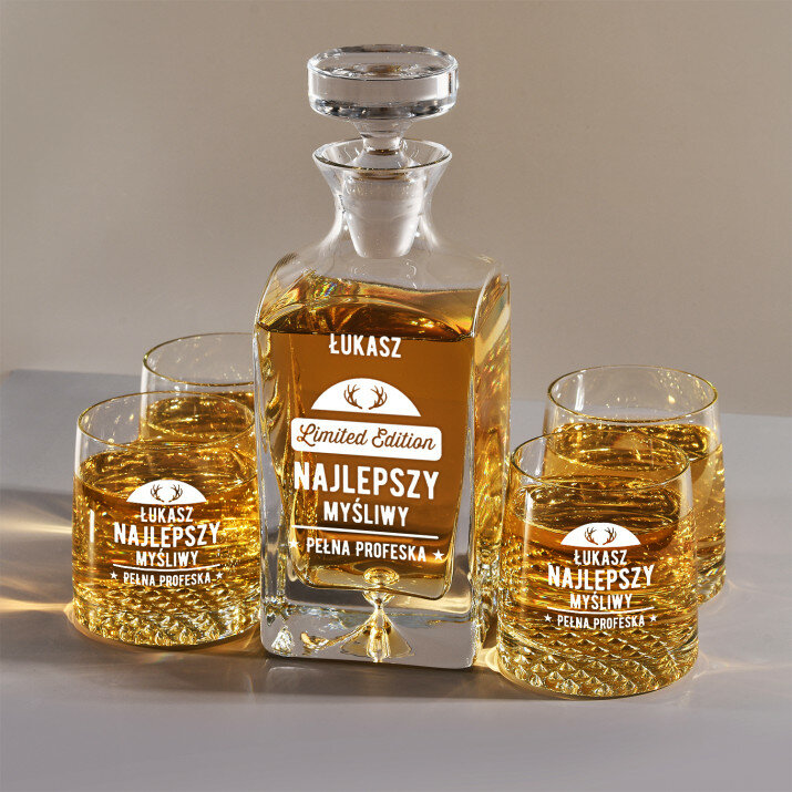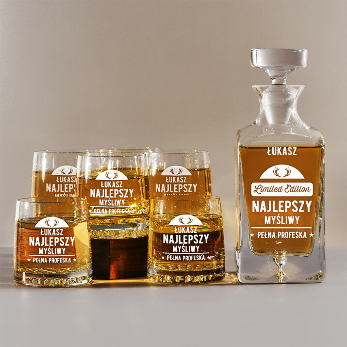 Unikalny zestaw - karafka i szklanki do whisky grawerowane w niesamowitym stylu. Must - have każdego myśliwego będącego fanem smakowitych alkoholi. Pospiesz się z zakupem - to zestaw z edycji limitowanej!WYKONANIE