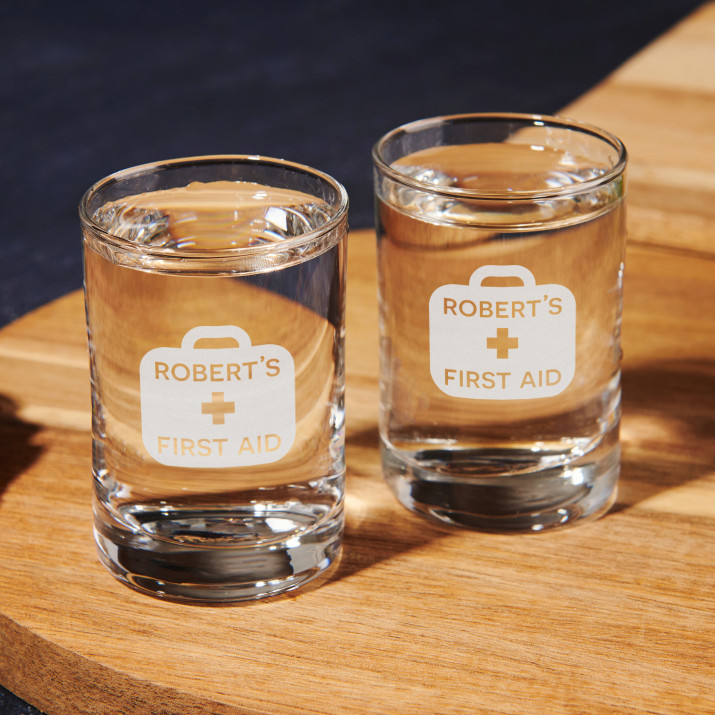 Te kieliszki do wódki z napisem 'First Aid' to zabawny i oryginalny prezent dla miłośników mocniejszych trunków. Świetna jakość i pomysł na humor.
