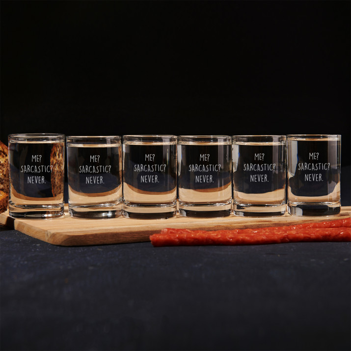 Niektórzy to mają cięte riposty! Czasem, żeby dorównać takiej osobie trzeba wytoczyć jeszcze większe działa. Postaw na stole specjalnie grawerowane kieliszki do wódki, polej alkohol i zobacz co się stanie!WYKONANIE