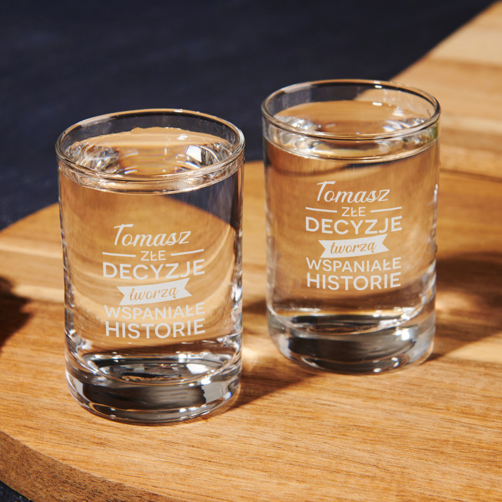 Czasem nam się wydaje, że decyzja, którą podjęliśmy była największym błędem w naszym życiu! Lepiej spojrzeć na to trochę bardziej optymistycznie i napić się dobrego alkoholu ze znajomymi z wyjątkowych grawerowanych kieliszków.WYKONANIE