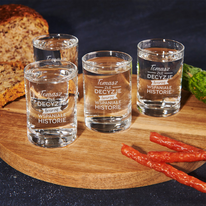 Eleganckie kieliszki z bezbarwnego szkła wysokiej jakości. Prosty, klasyczny kształt i doskonale wyważone proporcje sprawiają, że kieliszki spodobają się każdemu i będą idealne na różnego rodzaju przyjęcia. Na gładkiej powierzchni produktu umieszczamy personalizowany grawer, dzięki któremu wznoszenie toastów będzie jeszcze przyjemniejsze! Kieliszki dostępne pojedynczo oraz w zestawach po 2, 4 lub 6 sztuk. Można myć w zmywarce.Pojemność: 50 ml