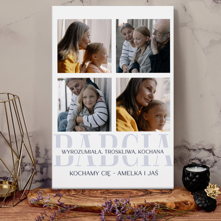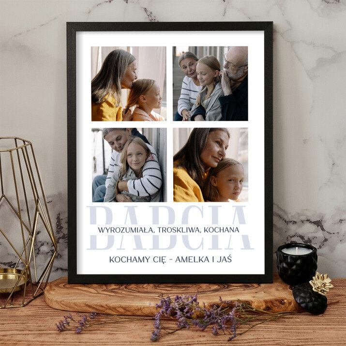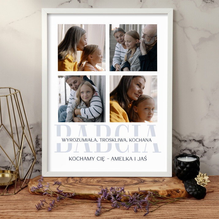 Piękna kompozycja Twoich zdjęć z kilkoma słowami prosto z serca oraz podpisami. Idealny prezent dla tych, z którymi łączy Cię mnóstwo wspomnień. Wystarczy wybrać ulubione fotografie najważniejszych dla Was chwil, a powstanie pamiątka, która zostanie z obdarowaną osobą na zawsze. To również niezwykle oryginalna i efektowna dekoracja do mieszkania.WYKONANIE