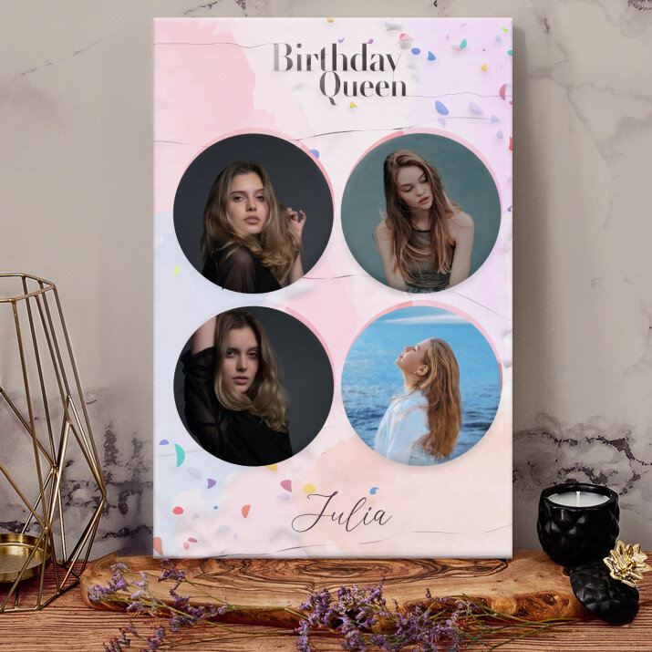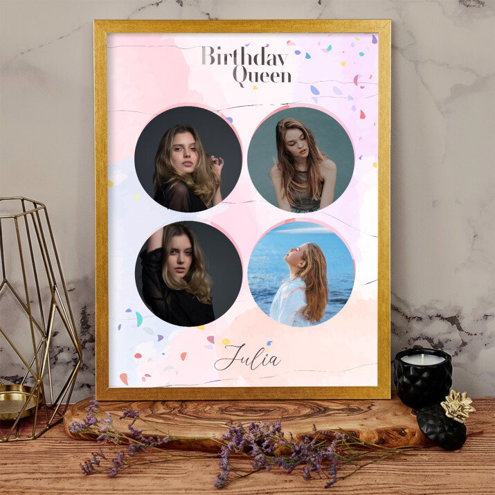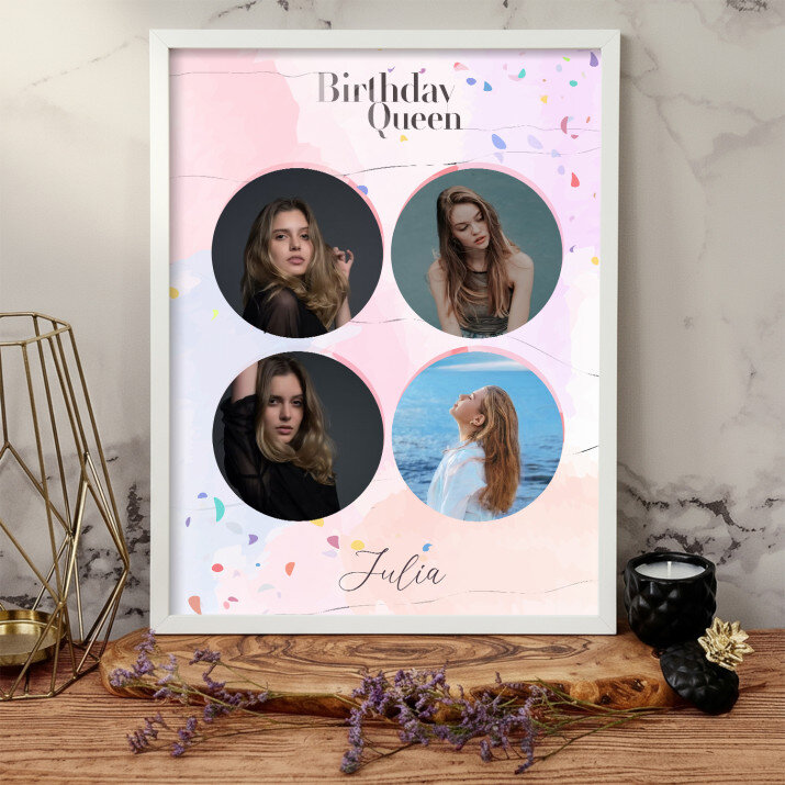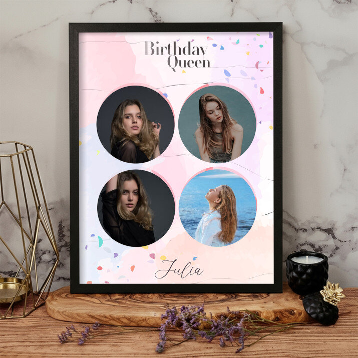 Piękna kompozycja Twoich zdjęć z kilkoma słowami prosto z serca oraz podpisami. Idealny prezent dla tych, z którymi łączy Cię mnóstwo wspomnień. Wystarczy wybrać ulubione fotografie najważniejszych dla Was chwil, a powstanie pamiątka, która zostanie z obdarowaną osobą na zawsze. To również niezwykle oryginalna i efektowna dekoracja do mieszkania.WYKONANIE