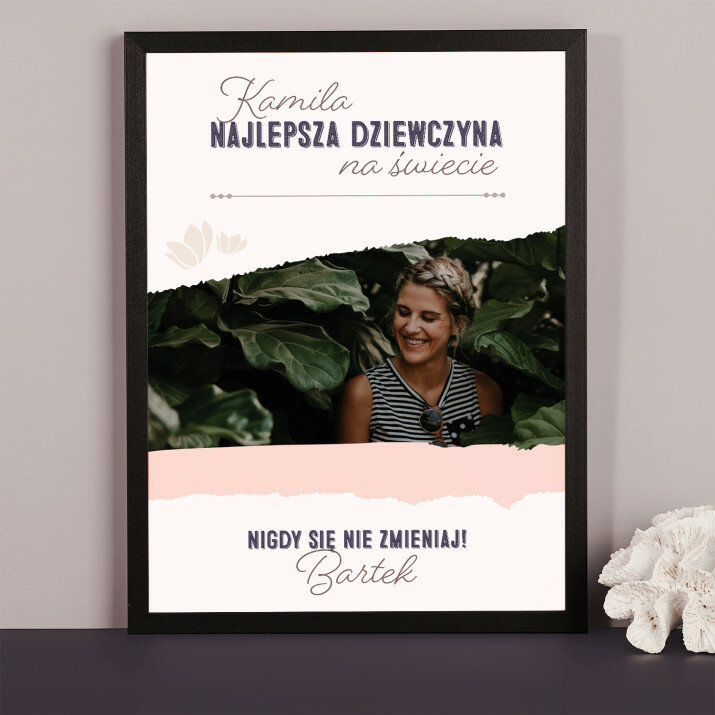 Piękna kompozycja Twoich zdjęć z kilkoma słowami prosto z serca oraz podpisami. Idealny prezent dla tych, z którymi łączy Cię mnóstwo wspomnień. Wystarczy wybrać ulubione fotografie najważniejszych dla Was chwil, a powstanie pamiątka, która zostanie z obdarowaną osobą na zawsze. To również niezwykle oryginalna i efektowna dekoracja do mieszkania.