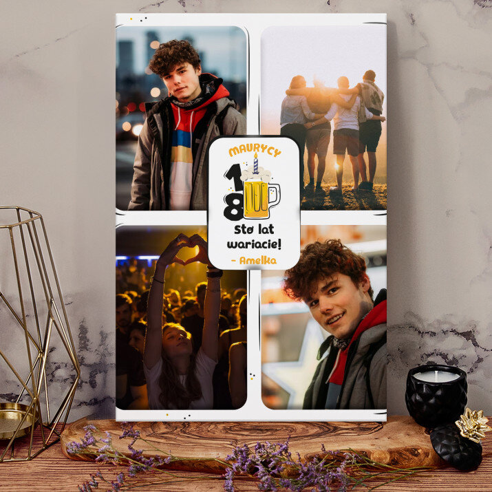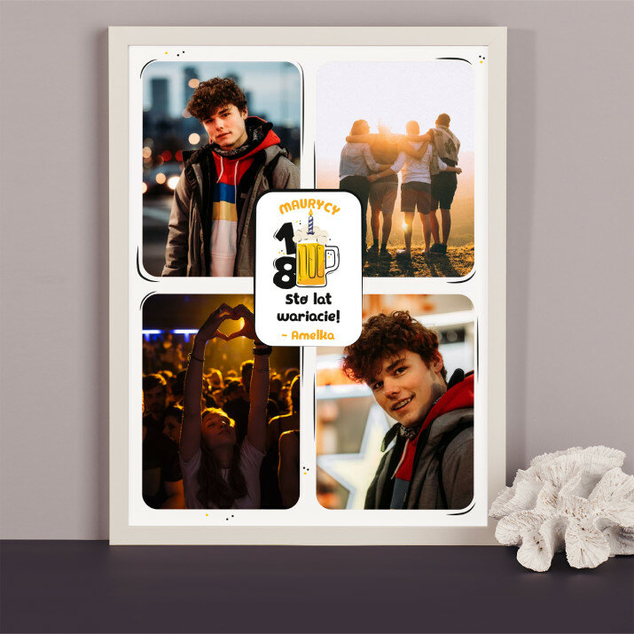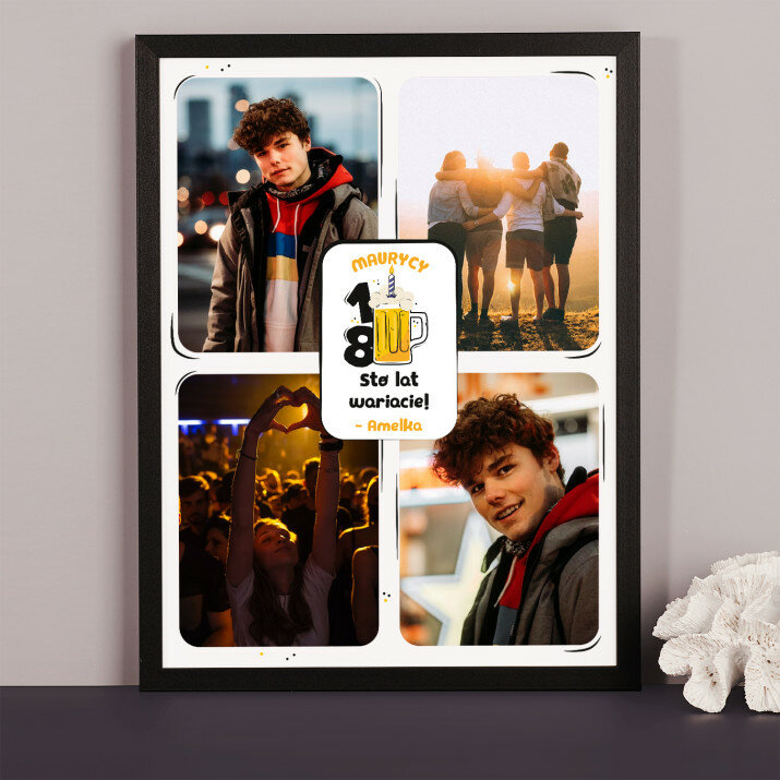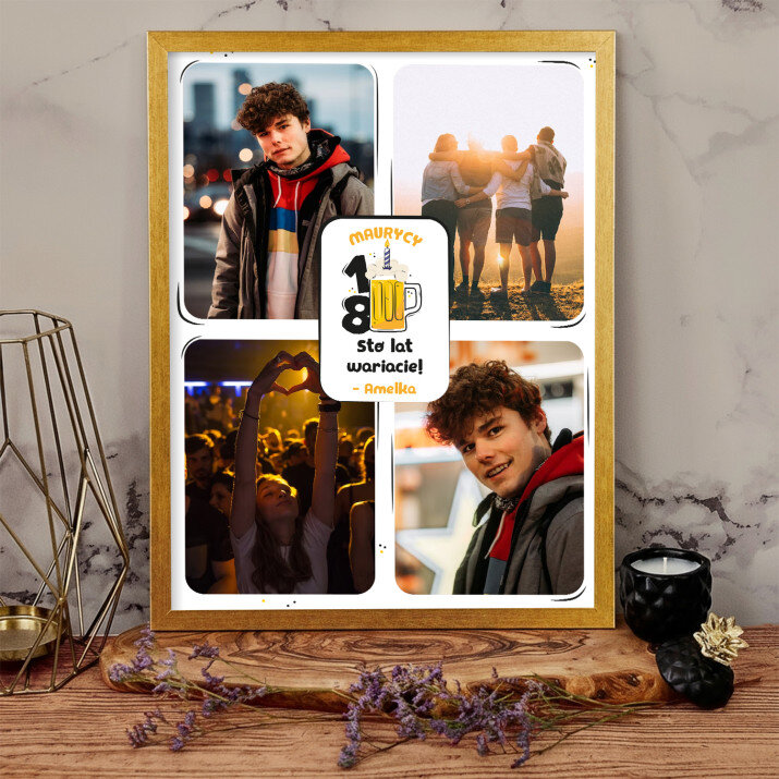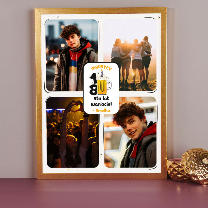 Ten kolaż ze zdjęć to idealny prezent na osiemnastkę. Personalizacja jest genialna, a złota ramka dodaje mu elegancji. Jubilat był zachwycony!