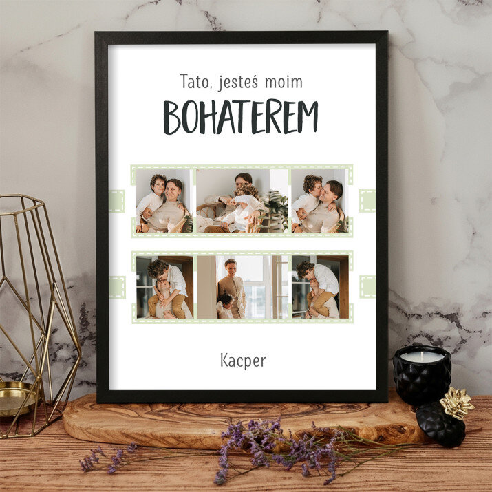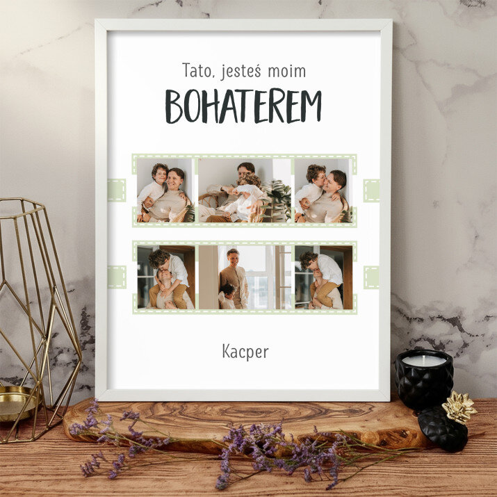Piękna kompozycja Twoich zdjęć z kilkoma słowami prosto z serca oraz podpisami. Idealny prezent dla tych, z którymi łączy Cię mnóstwo wspomnień. Wystarczy wybrać ulubione fotografie najważniejszych dla Was chwil, a powstanie pamiątka, która zostanie z obdarowaną osobą na zawsze. To również niezwykle oryginalna i efektowna dekoracja do mieszkania.WYKONANIE