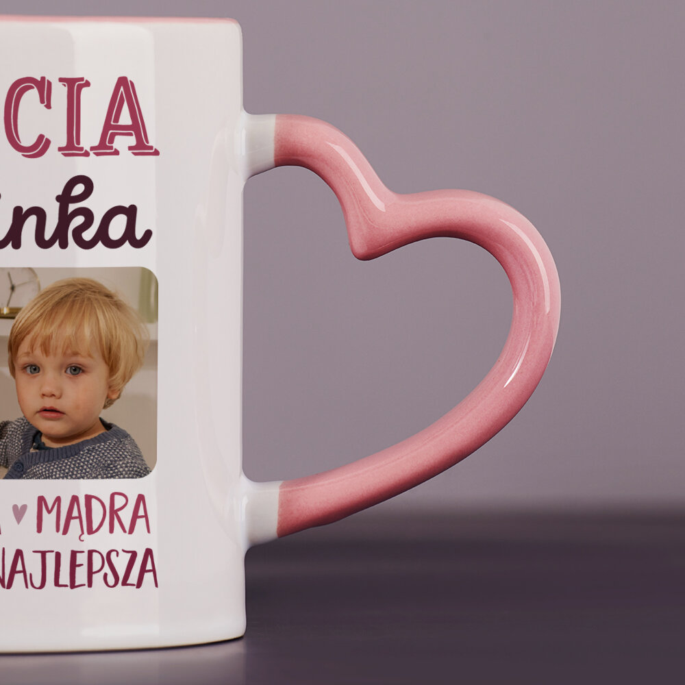 Dostępne są również kubki z uszkiem w kształcie serca i różowym środkiem, o pojemności 330 ml