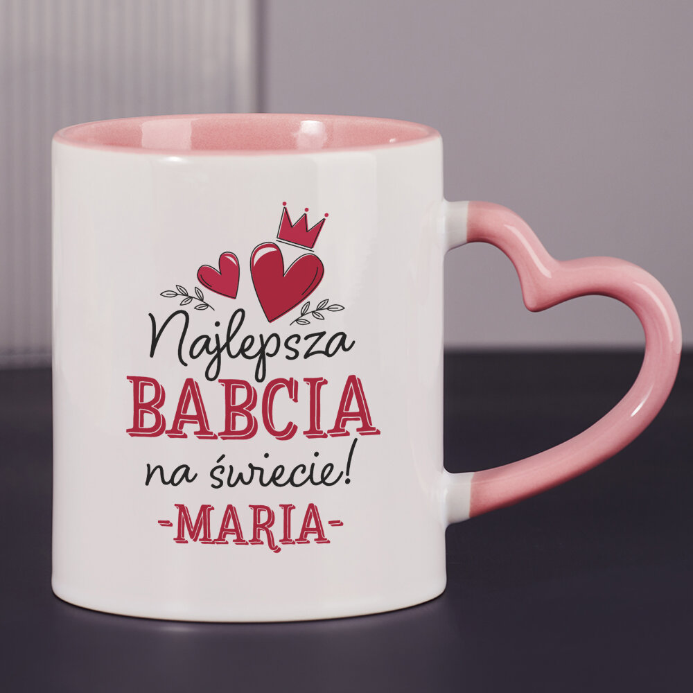 Dostępne są również kubki z uszkiem w kształcie serca i różowym środkiem, o pojemności 330 ml