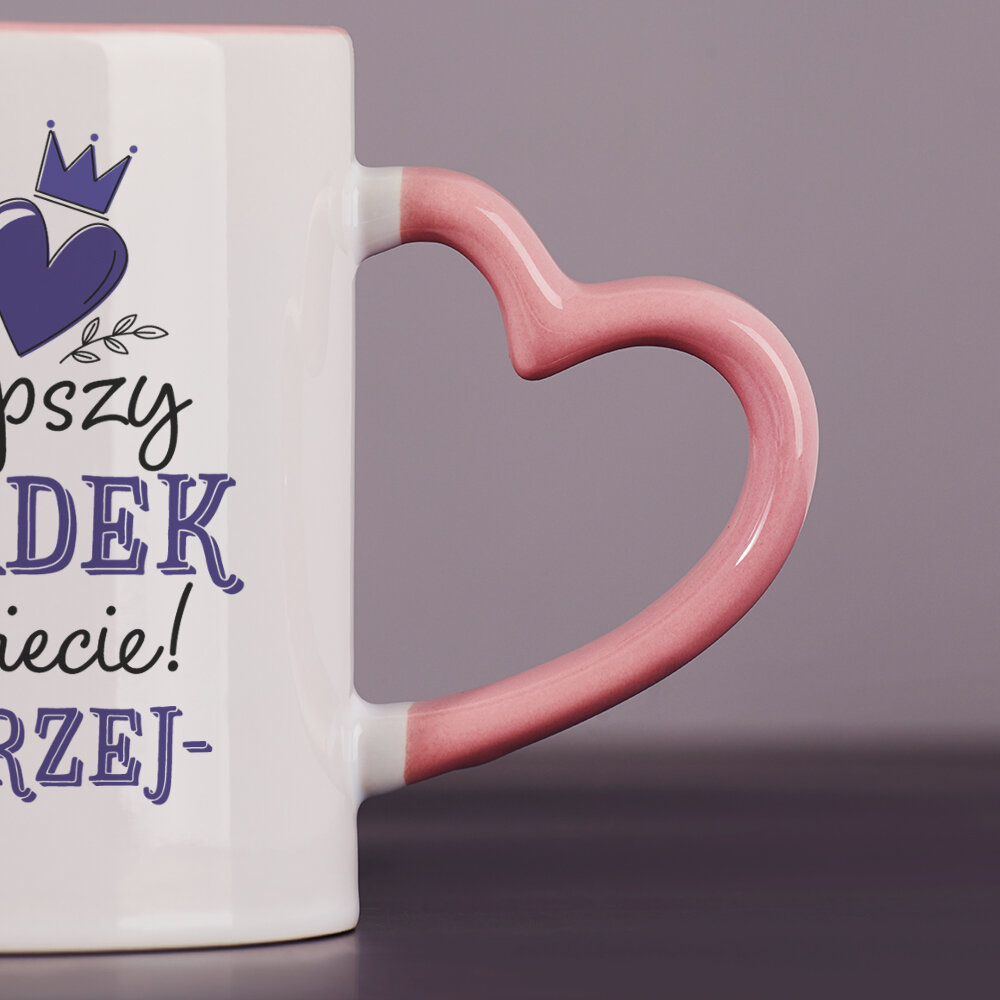 Dostępne są również kubki z uszkiem w kształcie serca i różowym środkiem, o pojemności 330 ml