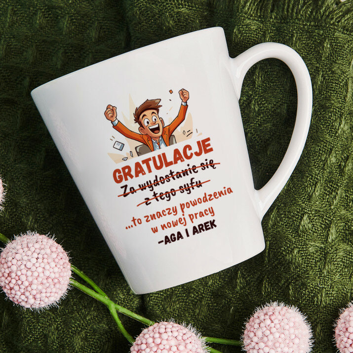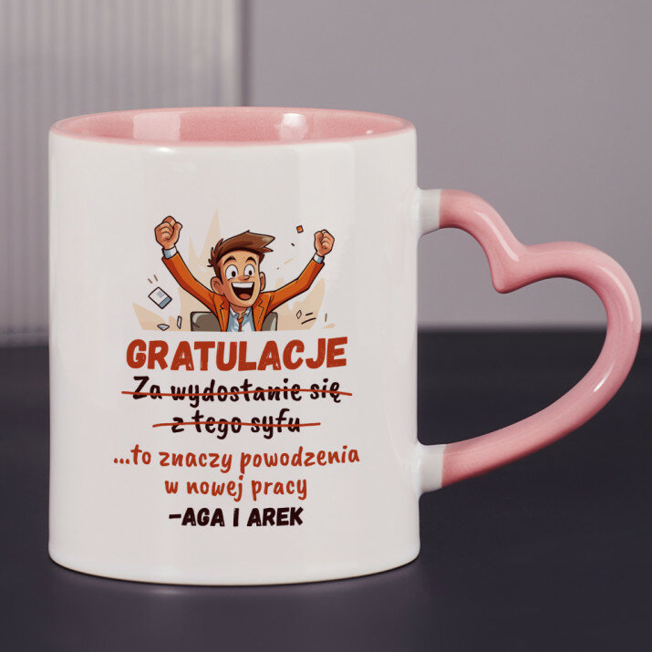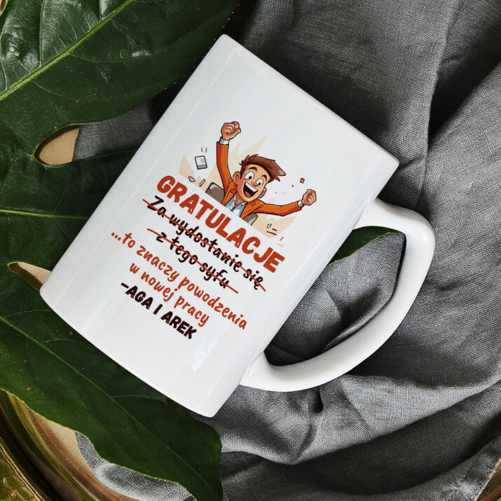Kubek wykonany jest trwałą metodą, podczas której pod wysoką temperaturą nakładany jest wydruk. Grafiki znajdują się po obu stronach ucha kubka, dzięki czemu jest to idealny prezent zarówno dla osób prawo, jak i leworęcznych :)Kubek można myć w zmywarce w trybach o niskiej temperaturze i nawet po kilkudziesięciu umyciach w zmywarce zachowuje barwy.