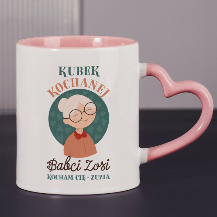 Dostępne są również kubki z uszkiem w kształcie serca i różowym środkiem, o pojemności 330 ml