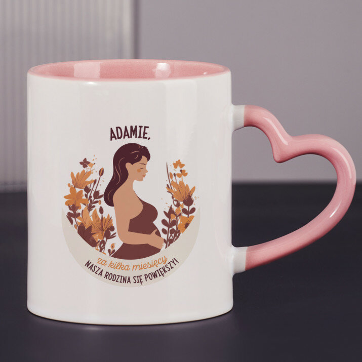 Dostępne są również kubki z uszkiem w kształcie serca i różowym środkiem, o pojemności 330 ml
