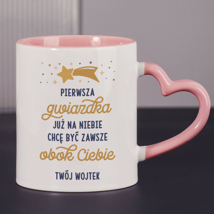 Dostępne są również kubki z uszkiem w kształcie serca i różowym środkiem, o pojemności 330 ml