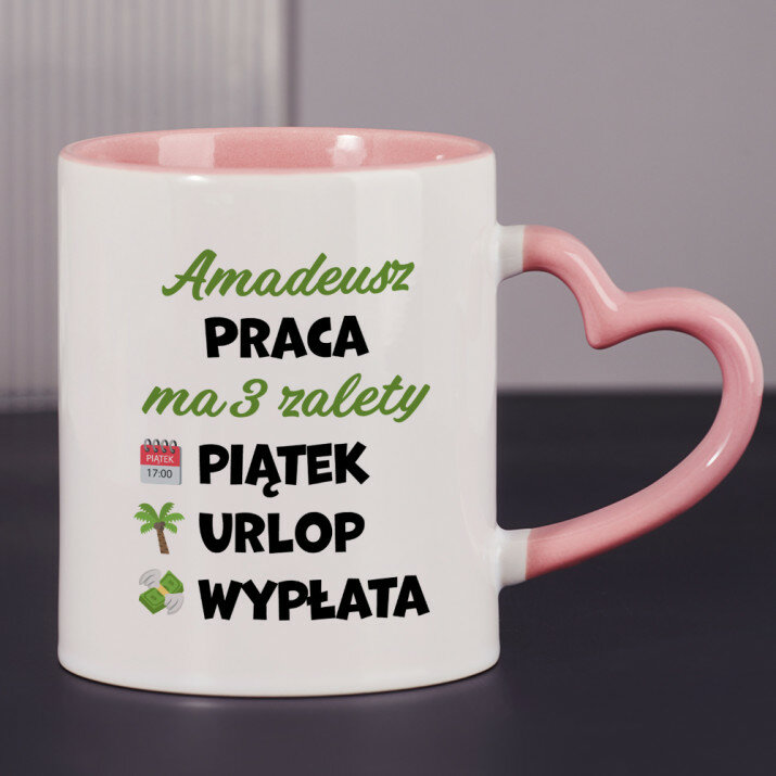 Dostępne są również kubki z uszkiem w kształcie serca i różowym środkiem, o pojemności 330 ml