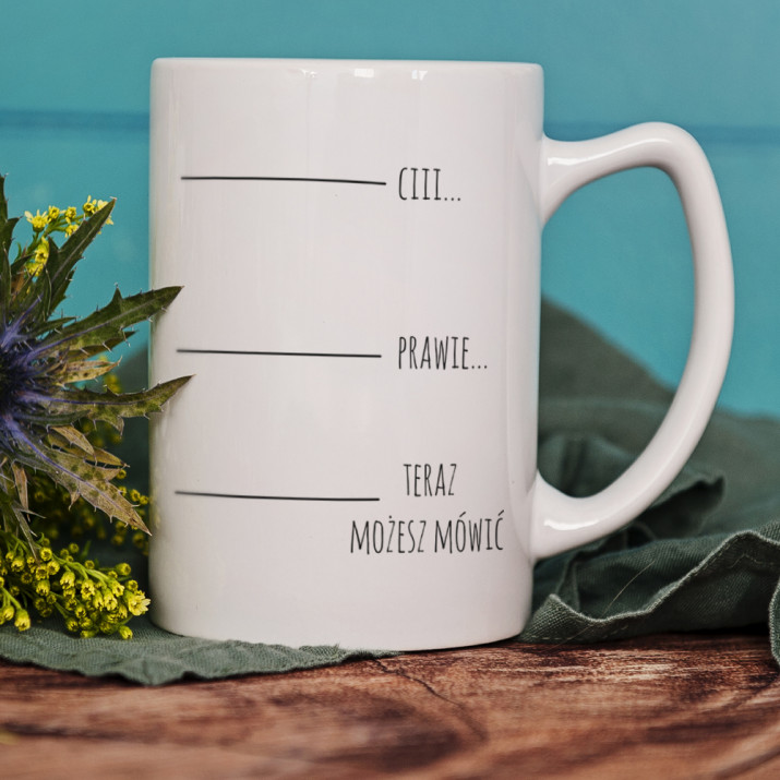 Oryginalny kubek, który świetnie sprawdzi się na biurowym spotkaniu, gdzie przełożony z jego pomocą będzie dawał znać, kto i kiedy może zabrać głos. Dobry prezent dla szefa mającego poczucie humoru.Wykonanie