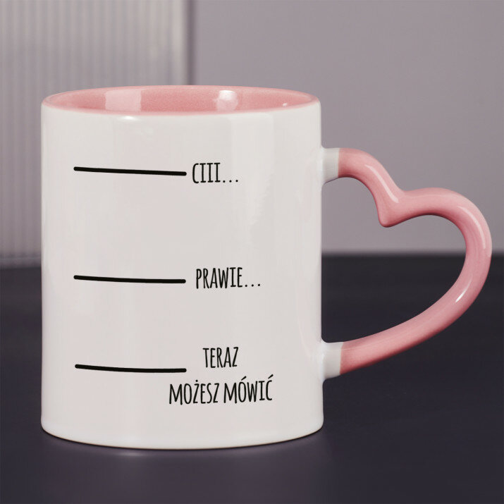 Dostępne są również kubki z uszkiem w kształcie serca i różowym środkiem, o pojemności 330 ml