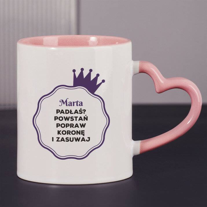 Dostępne są również kubki z uszkiem w kształcie serca i różowym środkiem, o pojemności 330 ml