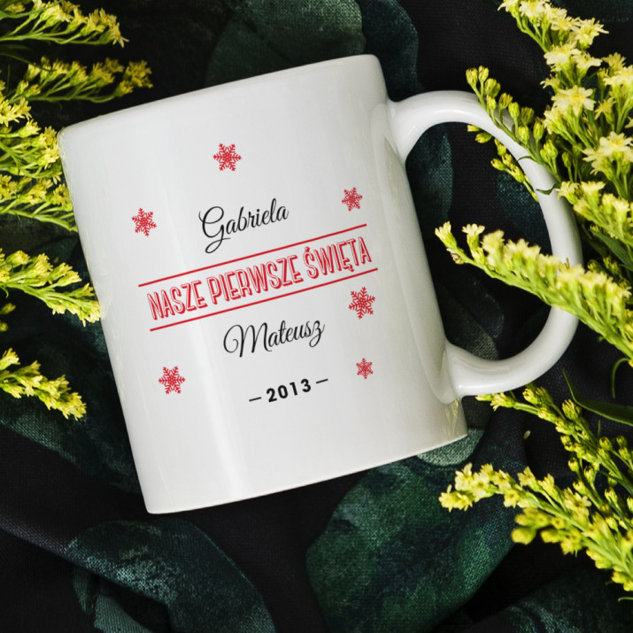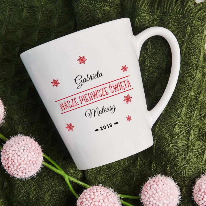 Święta to zawsze wyjątkowy czas, ale pierwsze, wspólnie spędzone święta – to dopiero wydarzenie! Warto nadać mu odpowiednią oprawę, np. z pomocą tego wyjątkowego świątecznego kubka!Wykonanie