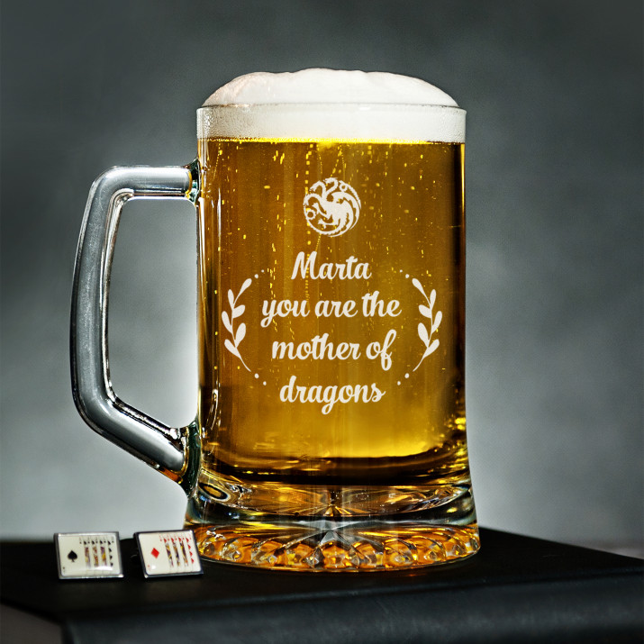 Każda fanka Gry o Tron podziwiała Deanerys, nie tylko za Jej urodę. Teraz możesz poczuć się jak Matka Smoków i cieszyć się tym szklanym, personalizowanym kuflem kiedy chcesz.