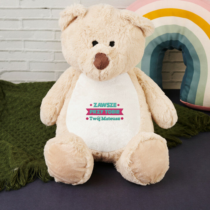 Spersonalizowanie pluszaka to niezwykle banalna sprawa. Wypełnij wymagane pola według własnego pomysłu, kliknij “Dodaj do koszyka”, a nasz twórczy i zaangażowany zespół zajmie się całą resztą.
