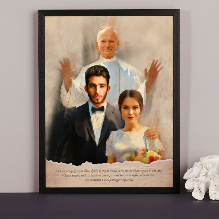 • wydruk plakatu na papierze fotograficznym obramowany w ramkę 30 x 40 cm w kolorze czarnym, białym i złotym