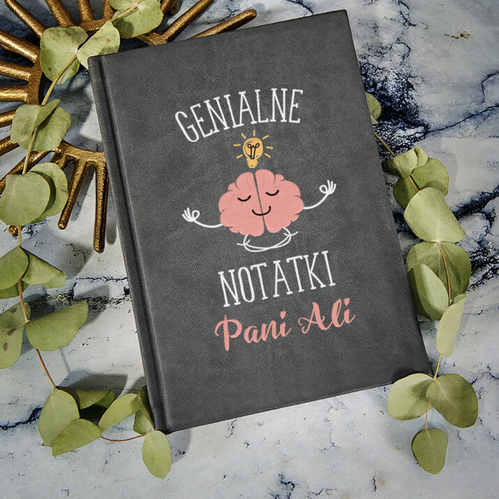 Notatnik książkowy w formacie A5 z wysokiej jakości nadrukiem UV.Notatnik wykończony jest miękkim materiałem i obszyty na brzegach.