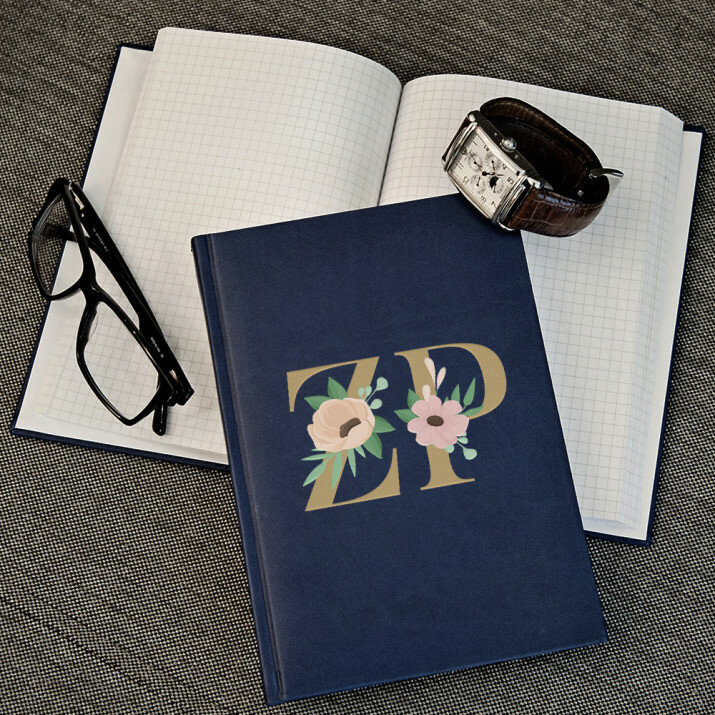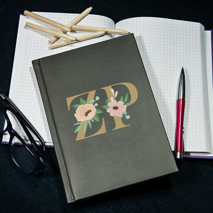 Notatnik książkowy w formacie A5 z wysokiej jakości nadrukiem UV.Notatnik wykończony jest miękkim materiałem i obszyty na brzegach.