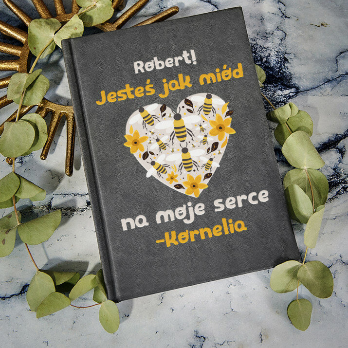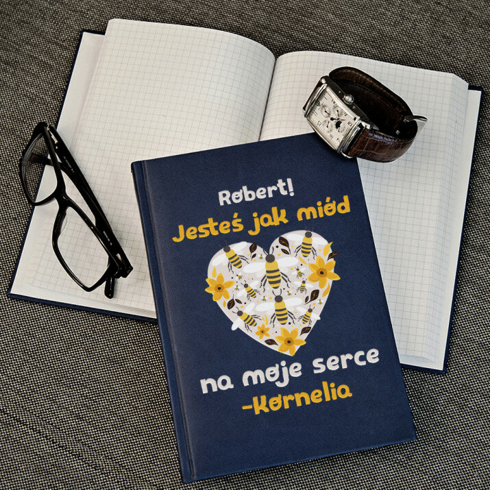 Notatnik książkowy w formacie A5 z wysokiej jakości nadrukiem UV.Notatnik wykończony jest miękkim materiałem i obszyty na brzegach.