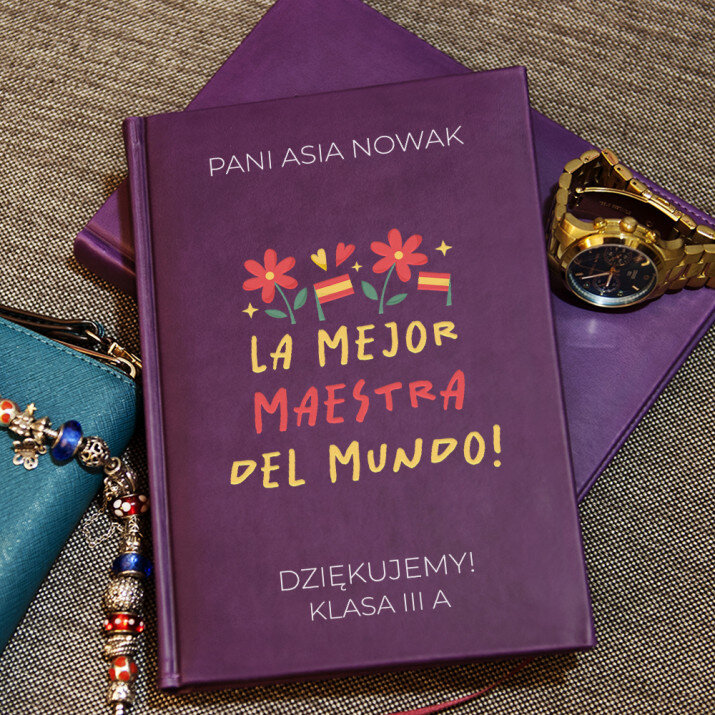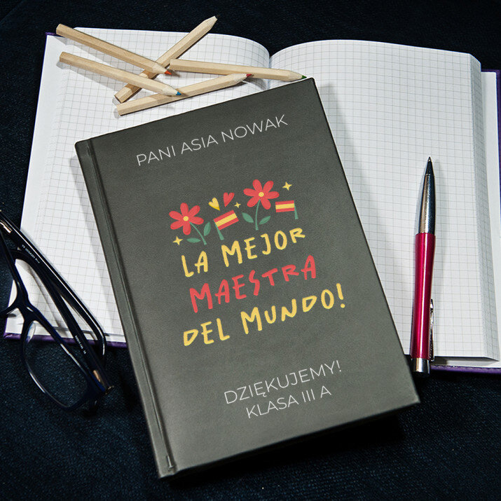 Notatnik książkowy w formacie A5 z wysokiej jakości nadrukiem UV.Notatnik wykończony jest miękkim materiałem i obszyty na brzegach.