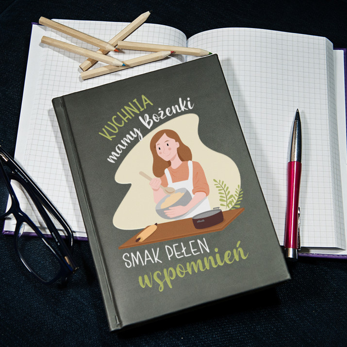 Notatnik książkowy w formacie A5 z wysokiej jakości nadrukiem UV.Notatnik wykończony jest miękkim materiałem i obszyty na brzegach.