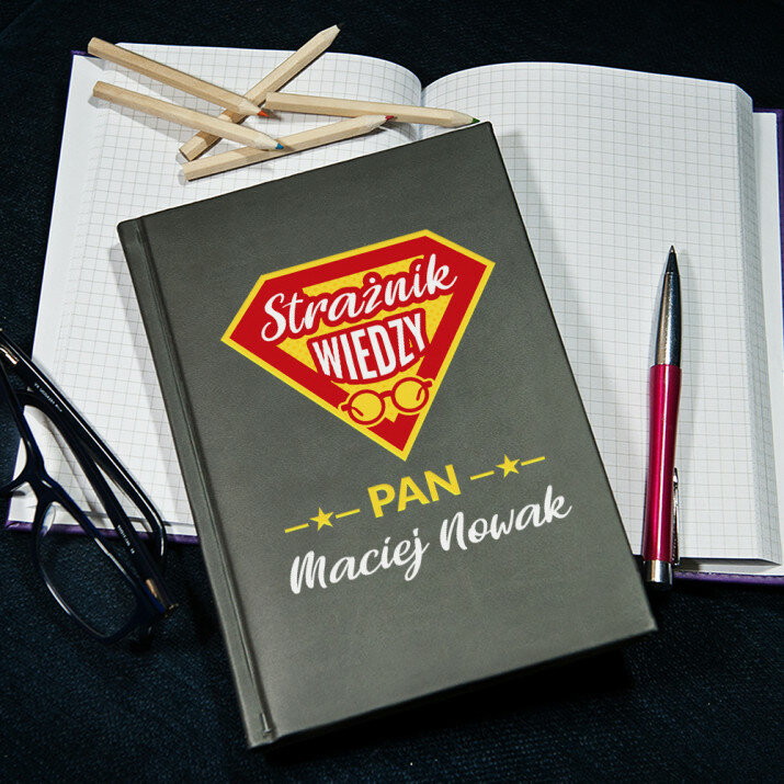 Notatnik książkowy w formacie A5 z wysokiej jakości nadrukiem UV.Notatnik wykończony jest miękkim materiałem i obszyty na brzegach.