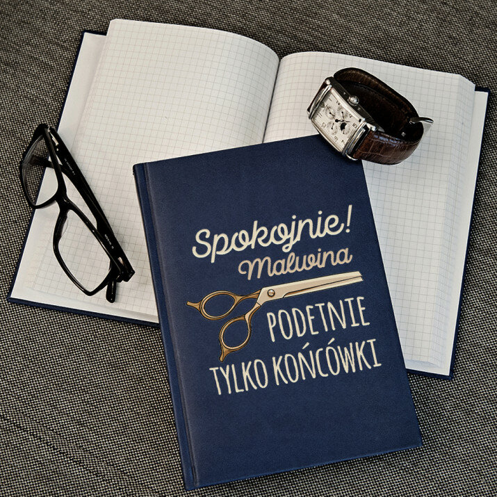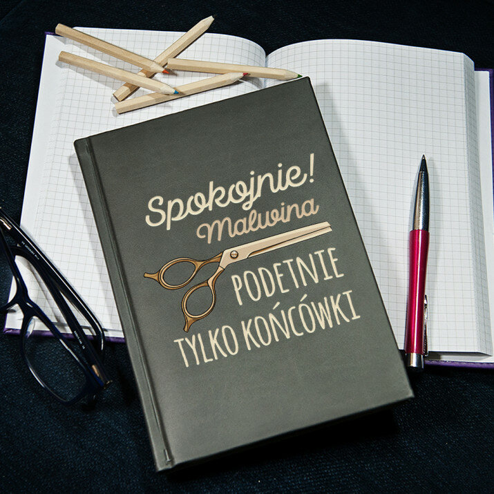 Notatnik książkowy w formacie A5 z wysokiej jakości nadrukiem UV.Notatnik wykończony jest miękkim materiałem i obszyty na brzegach.