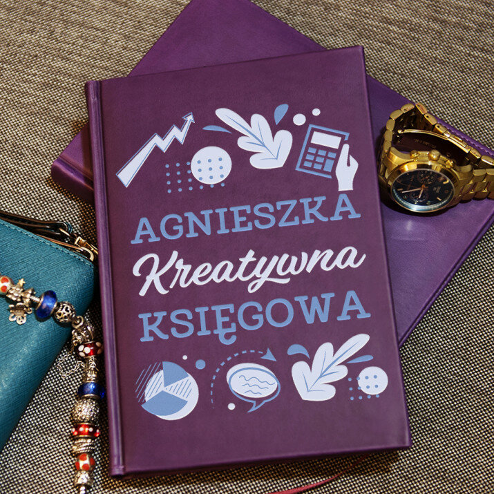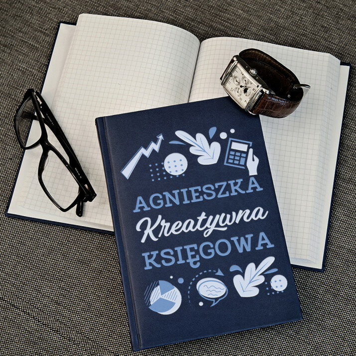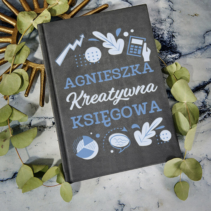 Notatnik książkowy w formacie A5 z wysokiej jakości nadrukiem UV.Notatnik wykończony jest miękkim materiałem i obszyty na brzegach.