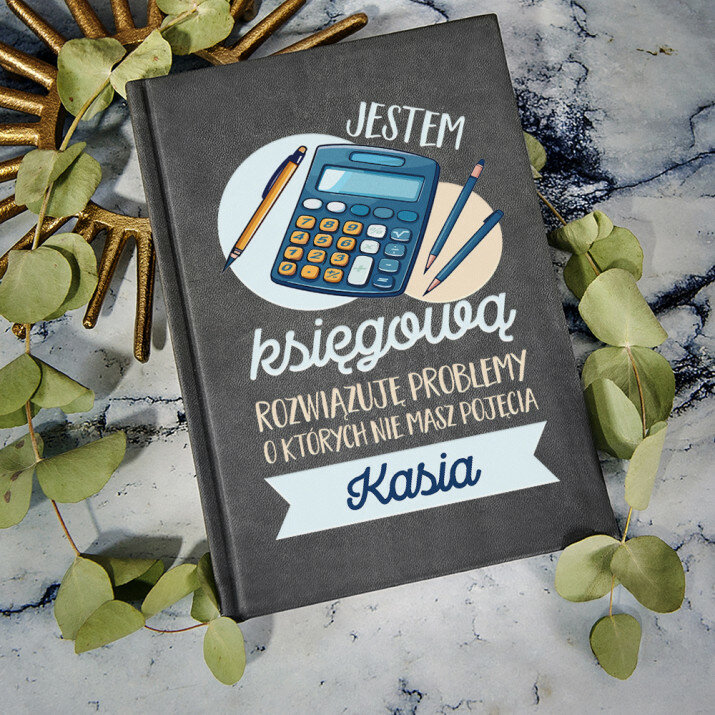 Notatnik książkowy w formacie A5 z wysokiej jakości nadrukiem UV.Notatnik wykończony jest miękkim materiałem i obszyty na brzegach.